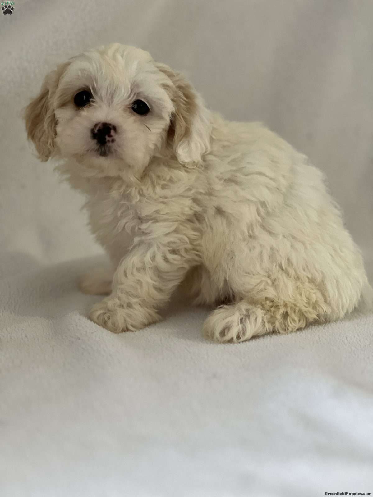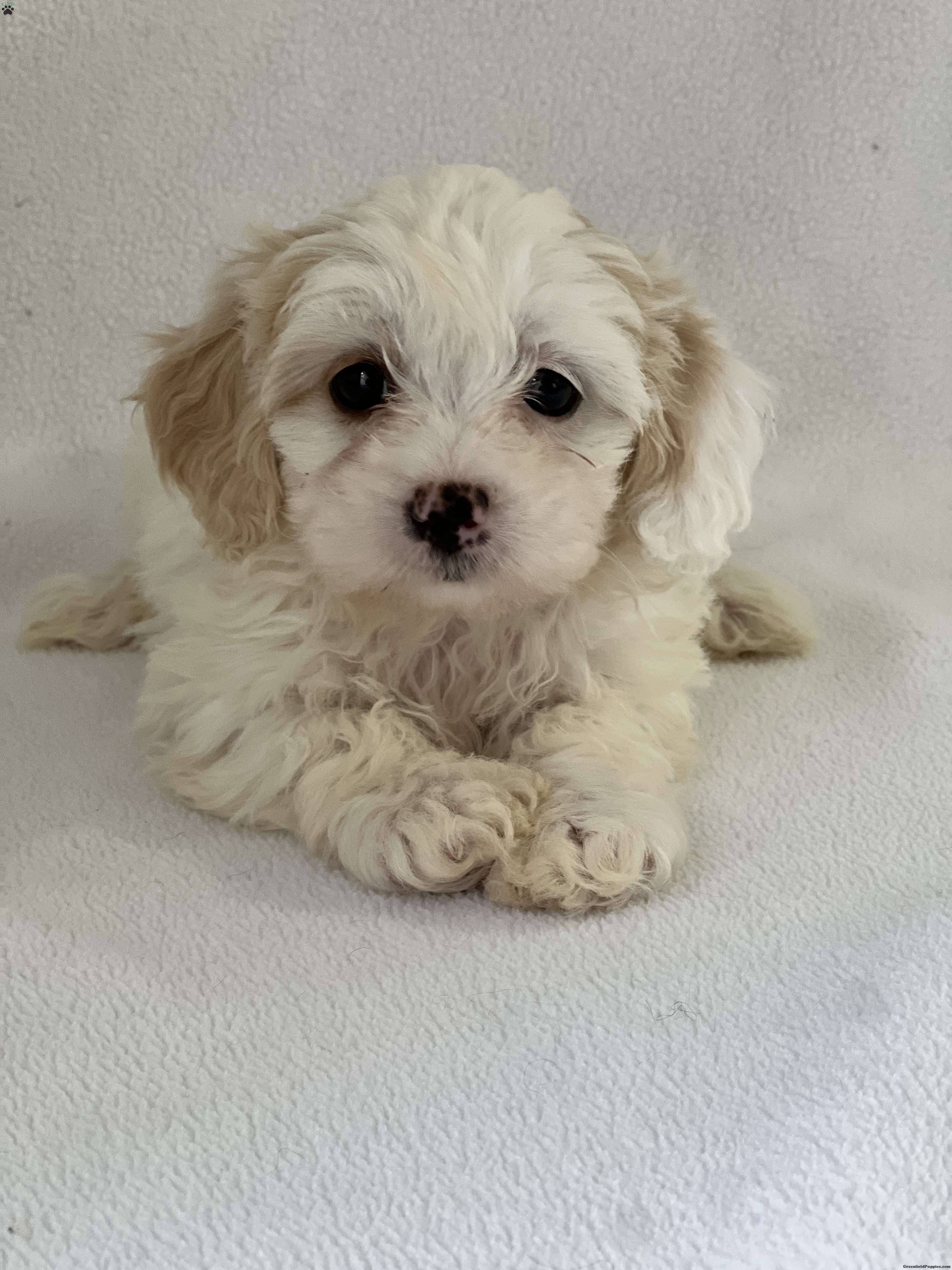 Pearl is a beautiful white Shih-Poo with a soft, fluffy coat that looks like a little cloud. Her bright eyes and sweet puppy face give her that perfect teddy-bear look. Pearl is pure elegance and cuteness wrapped into one tiny pup, ready to shine and steal hearts the moment you see her.