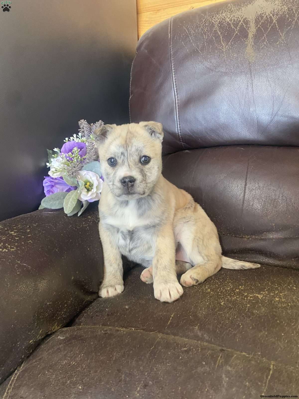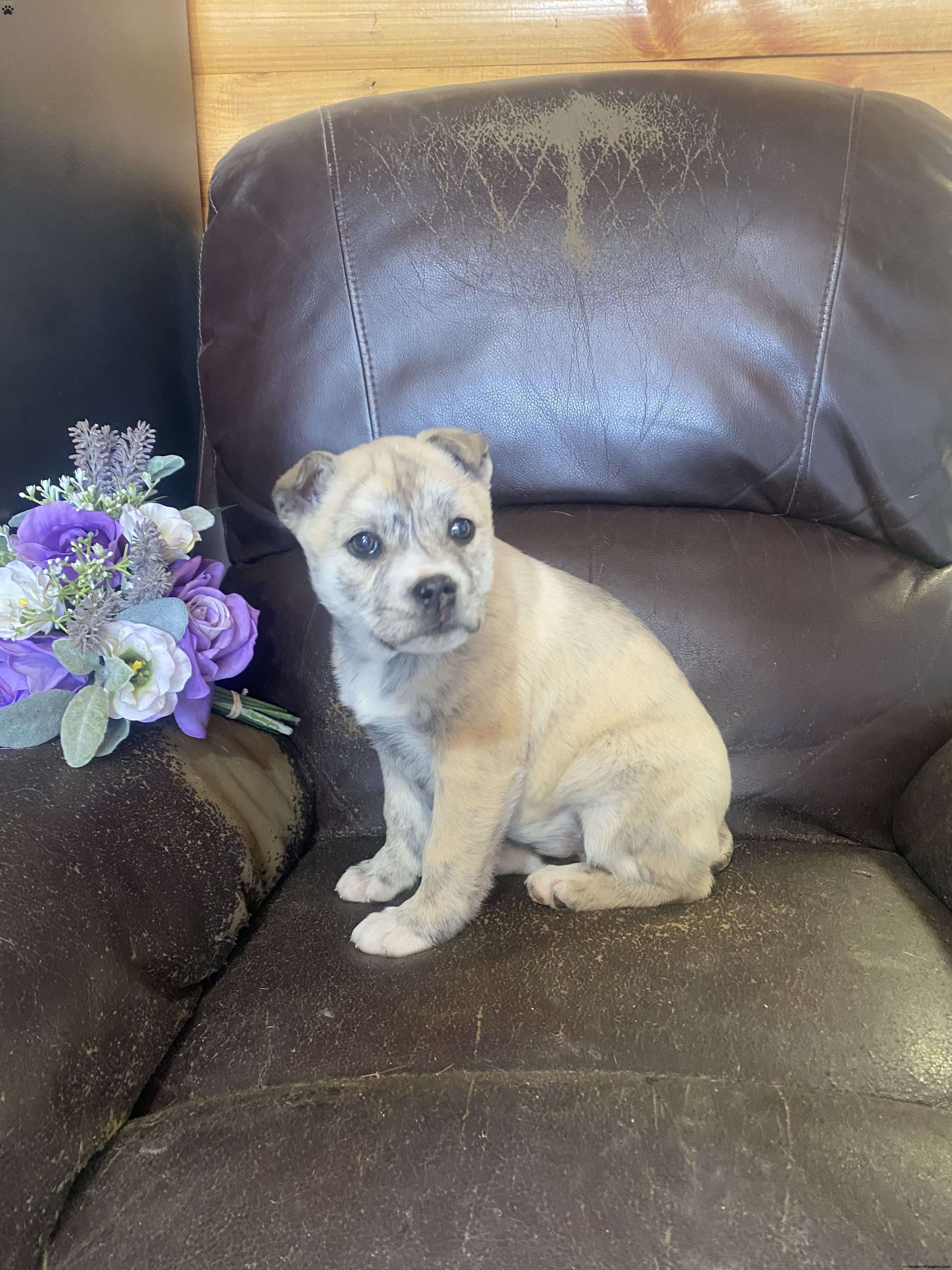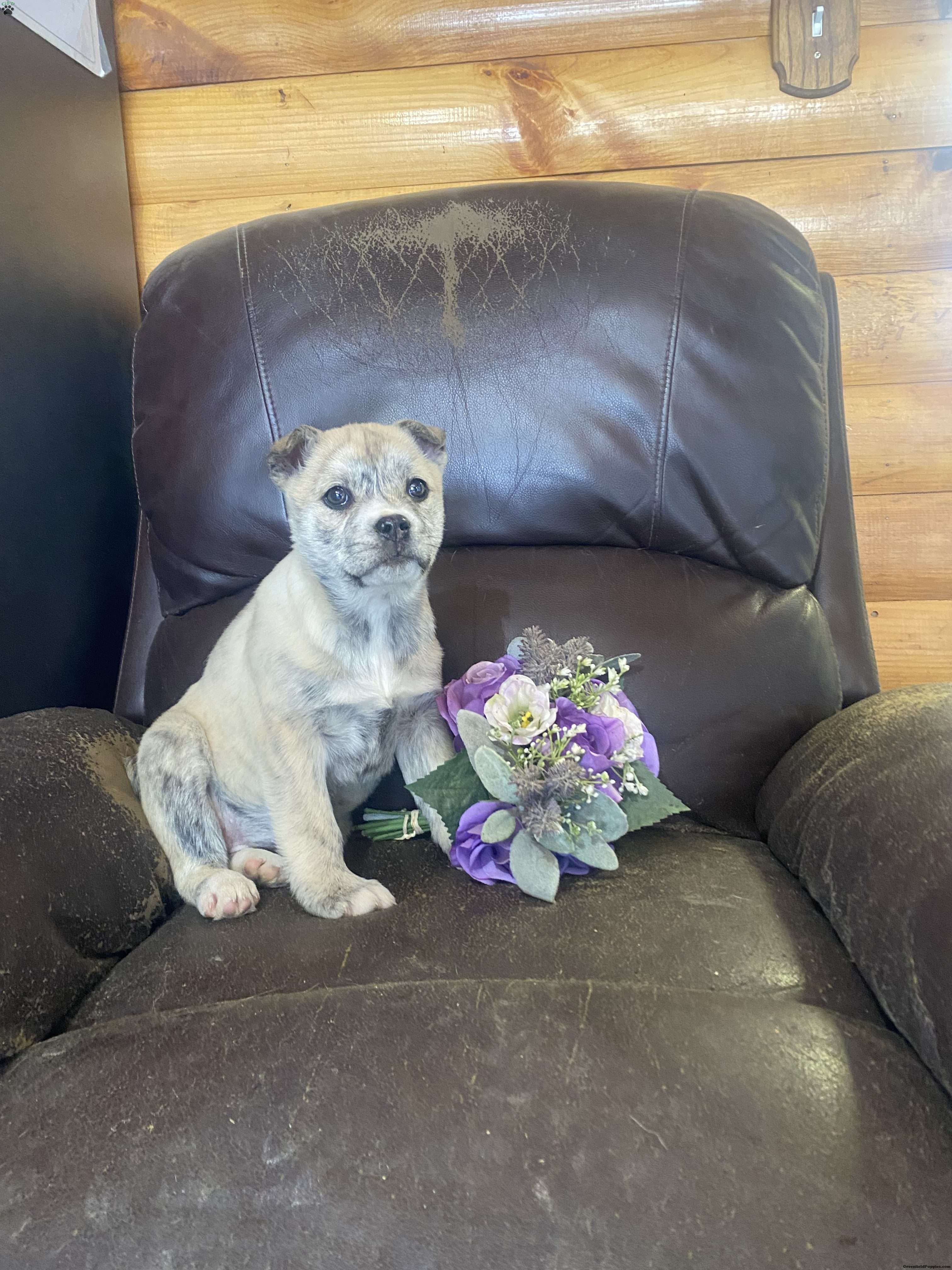 Very friendly. Well socialized puppy. She loves to stay by my side all the time. Great walking companion and will be your best friend forever. Up to date on shots and wormed. Ready for her new family now,,,,, This is a very beautiful rare puppy. Her color/ is very special. She has a little blue Merle and a little brindle in her coat. She is my favorite!!!