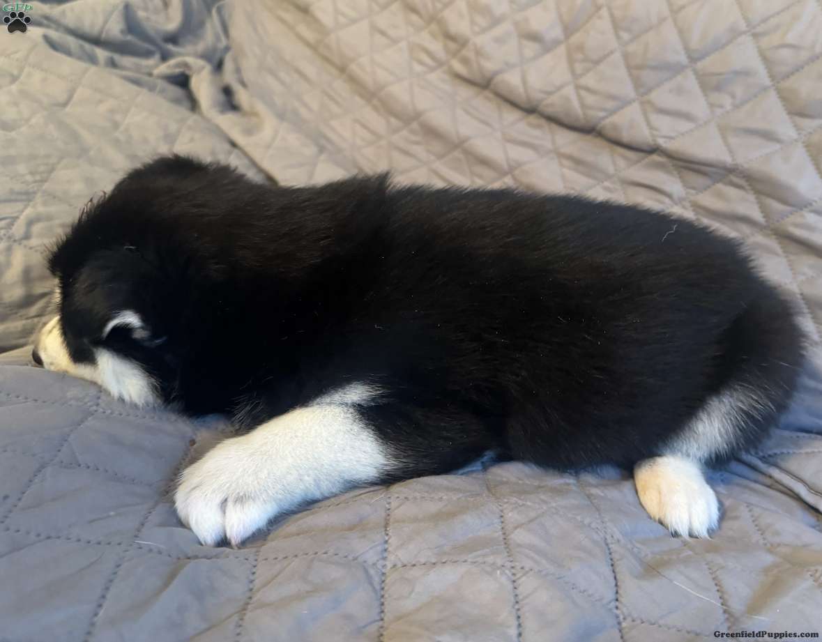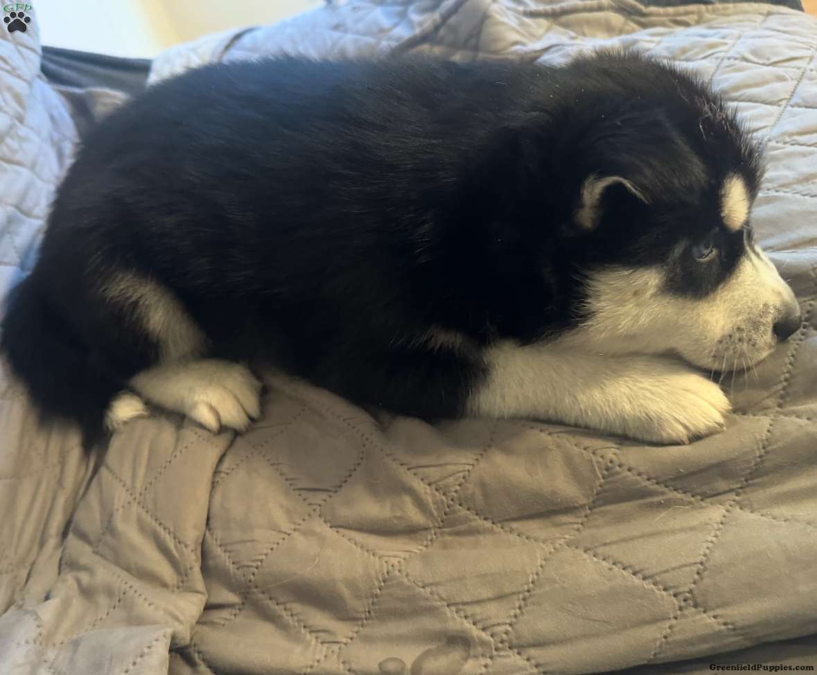 Ham is a Black and White Siberian Husky Puppy. He is a very happy pup who loves to play with the kids. He is socialized with the help of our 5 Huskies and raised with the help and around our 4 kids from 3-13. He is 100% Siberian Husky, both parents are DNA and Health Checked.