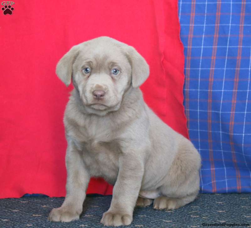 Brie is a friendly Silver Labrador Retriever puppy who can be registered with the AKC. This playful girl comes home with a 30 day health guarantee plus an extended genetic health guarantee, both provided by the breeders. Brie has been seen by a vet and is up to date on shots and de-wormer. This sweetheart is socialized and ready to be adored by her forever family!