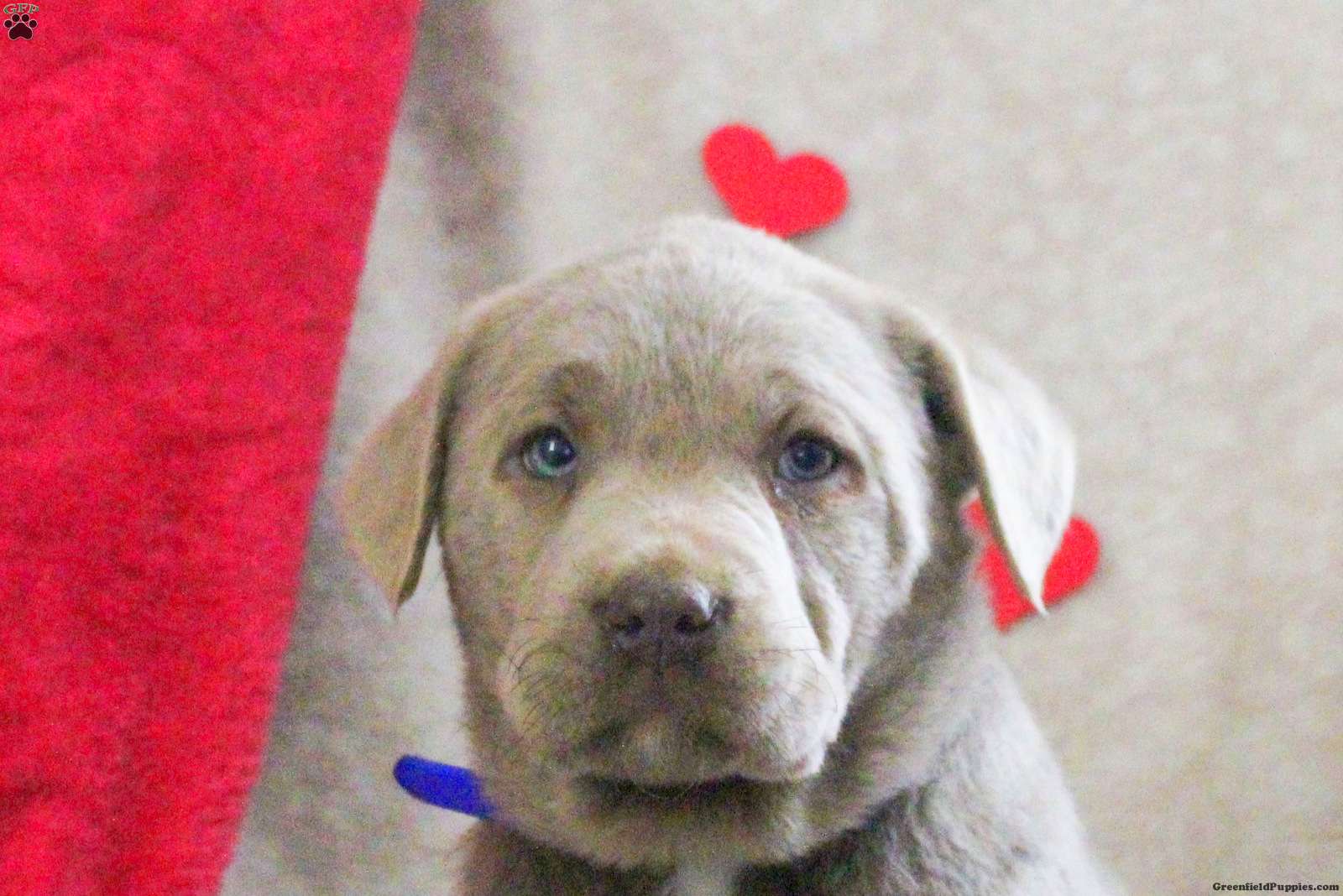 Lachlan is a wiggly English Silver Labrador Retriever puppy who loves to play! This fun boy can be registered with the AKC and comes home with a health guarantee provided by the breeder. Lachlan has been seen by a vet and is up to date on shots and de-wormer. This sweetheart is socialized, family raised with children, and ready to meet you!