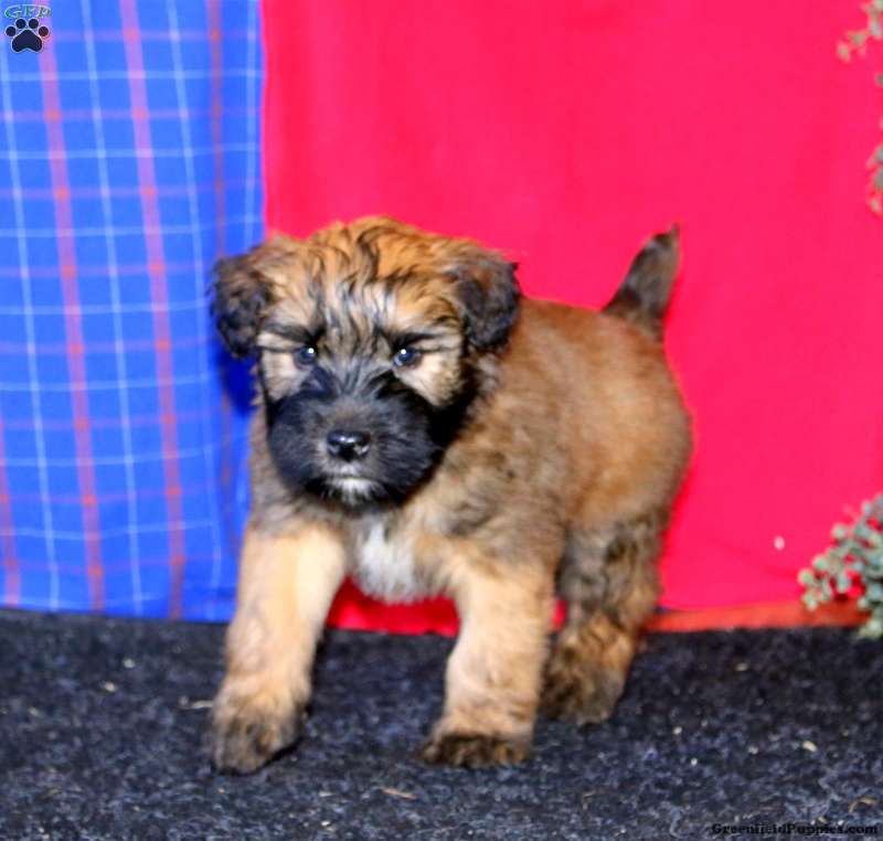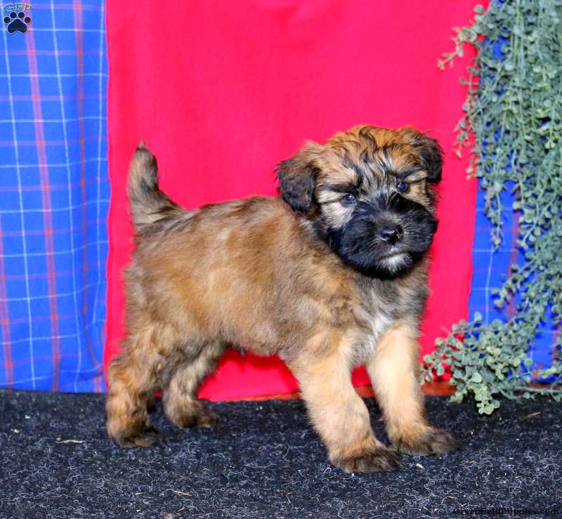 Teddy is a friendly Soft Coated Wheaten Terrier puppy who loves to play and can be registered with the ACA! This happy boy has been seen by a vet and is up to date on shots and de-wormer. He comes home with a 30 day health guarantee plus an extended genetic health guarantee, both provided by the breeders. Teddy is well socialized, family raised with children, and ready to be adored by you!