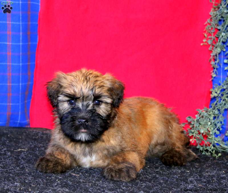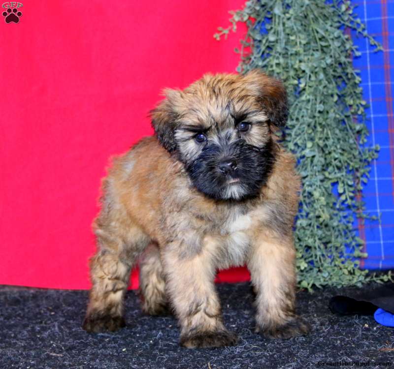 Trevor is a friendly Soft Coated Wheaten Terrier puppy who loves to play and can be registered with the ACA! This happy boy has been seen by a vet and is up to date on shots and de-wormer. He comes home with a 30 day health guarantee plus an extended genetic health guarantee, both provided by the breeders. Trevor is well socialized, family raised with children, and ready to be adored by you!