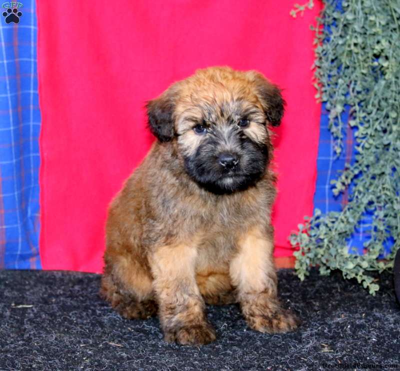 Tucker is a friendly Soft Coated Wheaten Terrier puppy who loves to play and can be registered with the ACA! This happy boy has been seen by a vet and is up to date on shots and de-wormer. He comes home with a 30 day health guarantee plus an extended genetic health guarantee, both provided by the breeders. Tucker is well socialized, family raised with children, and ready to be adored by you!