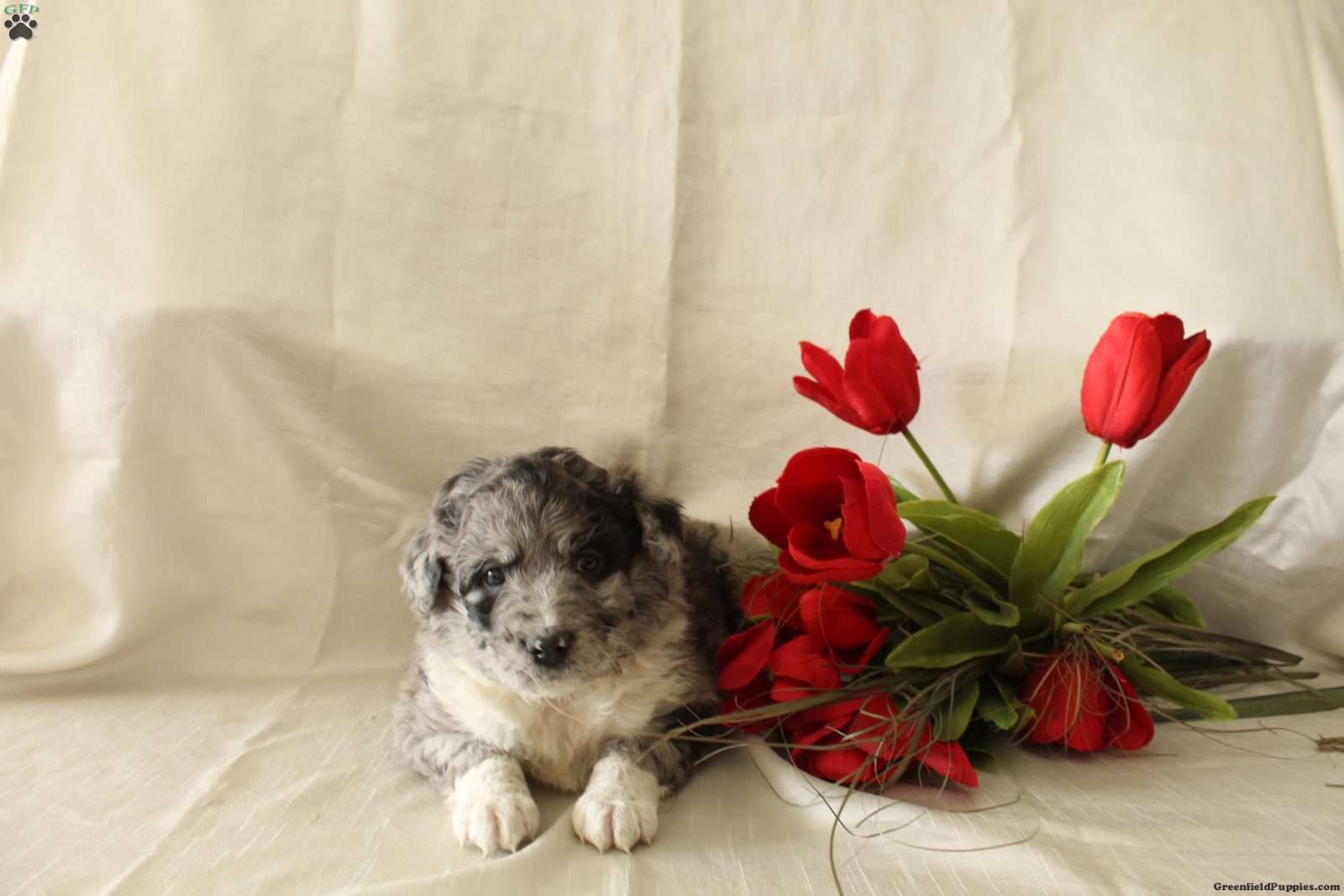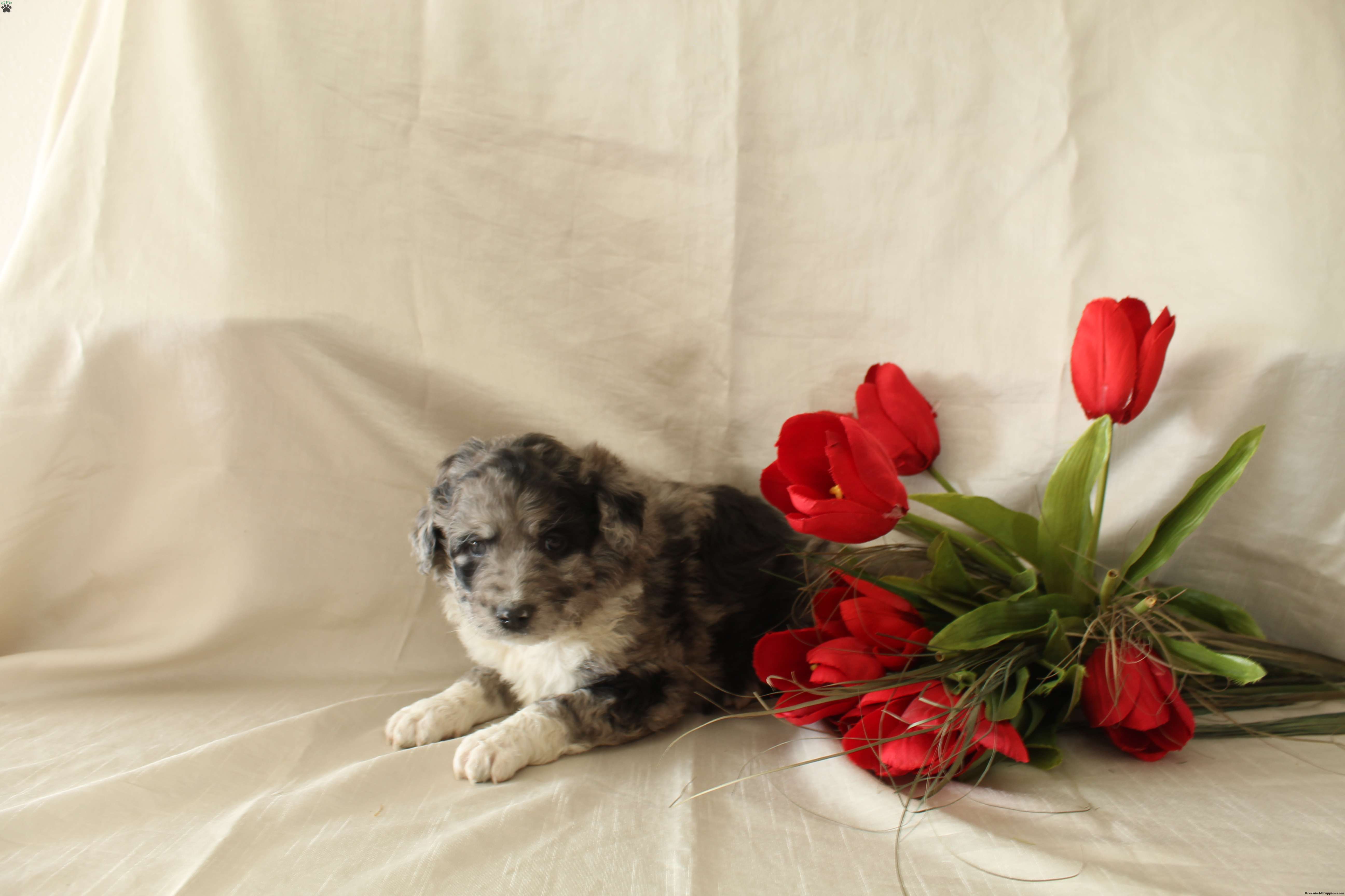 He is very friendly and likes to play with children. The mom is a Bernedoodle and the dad is a mini Eskimo.