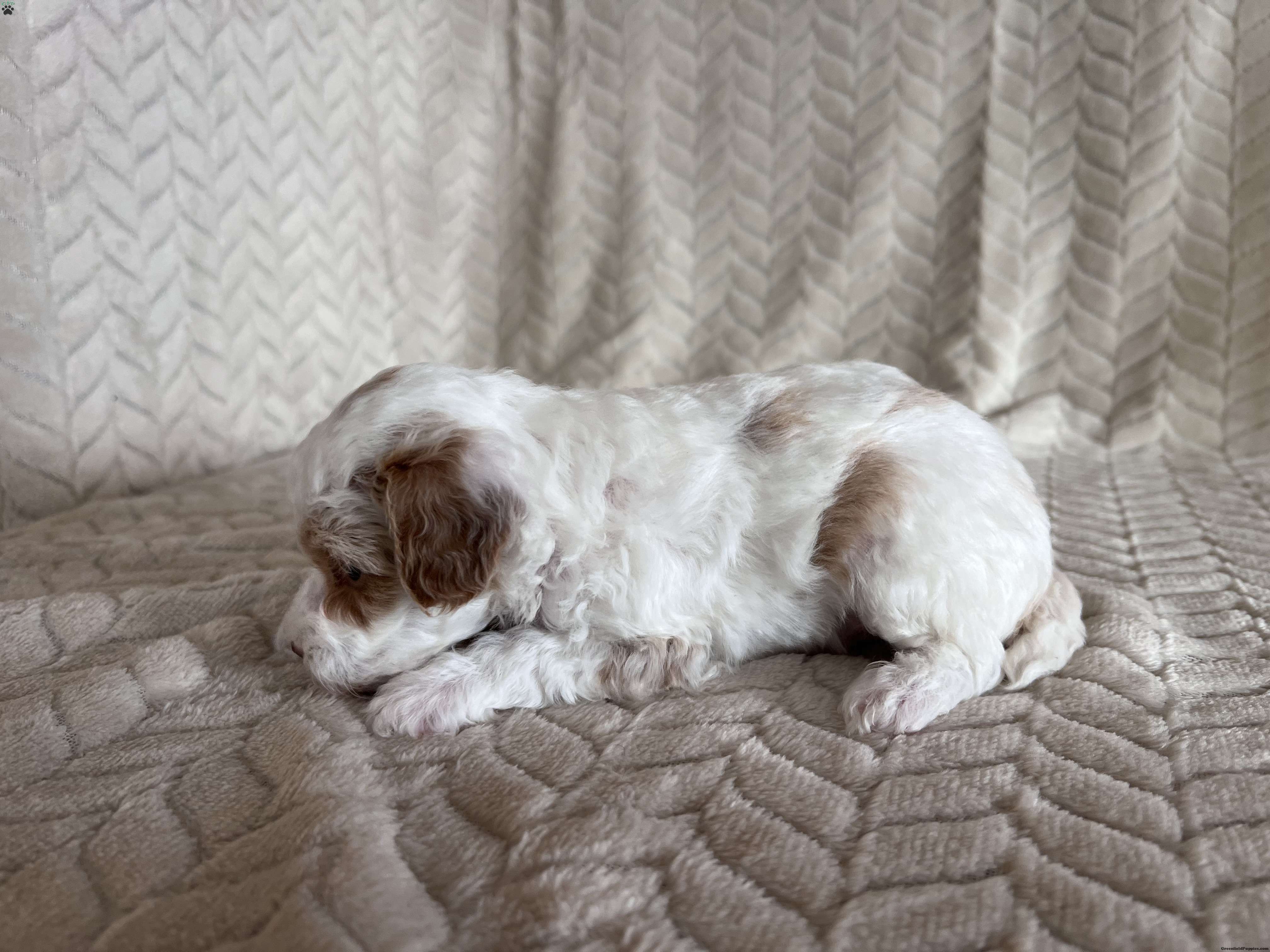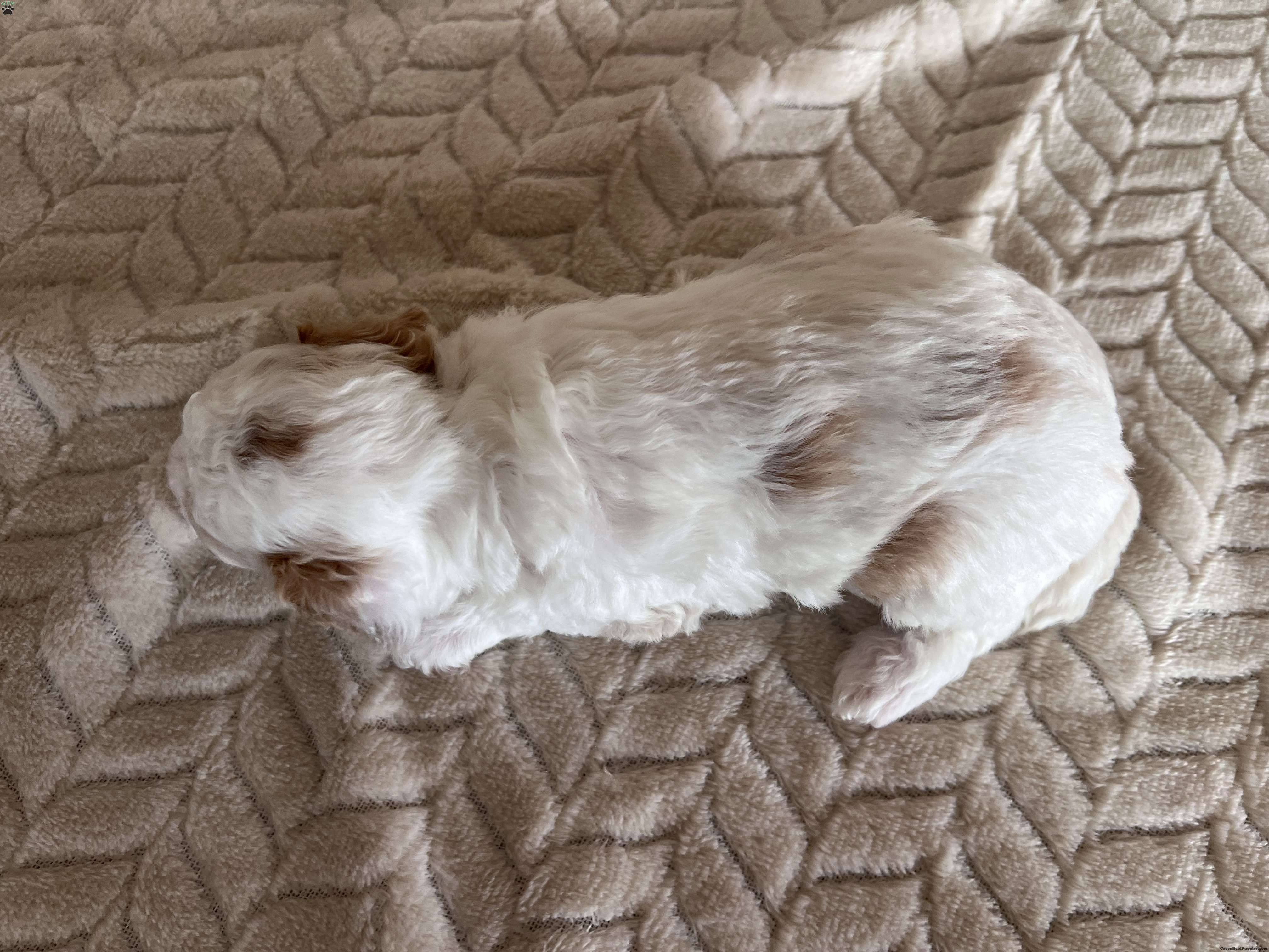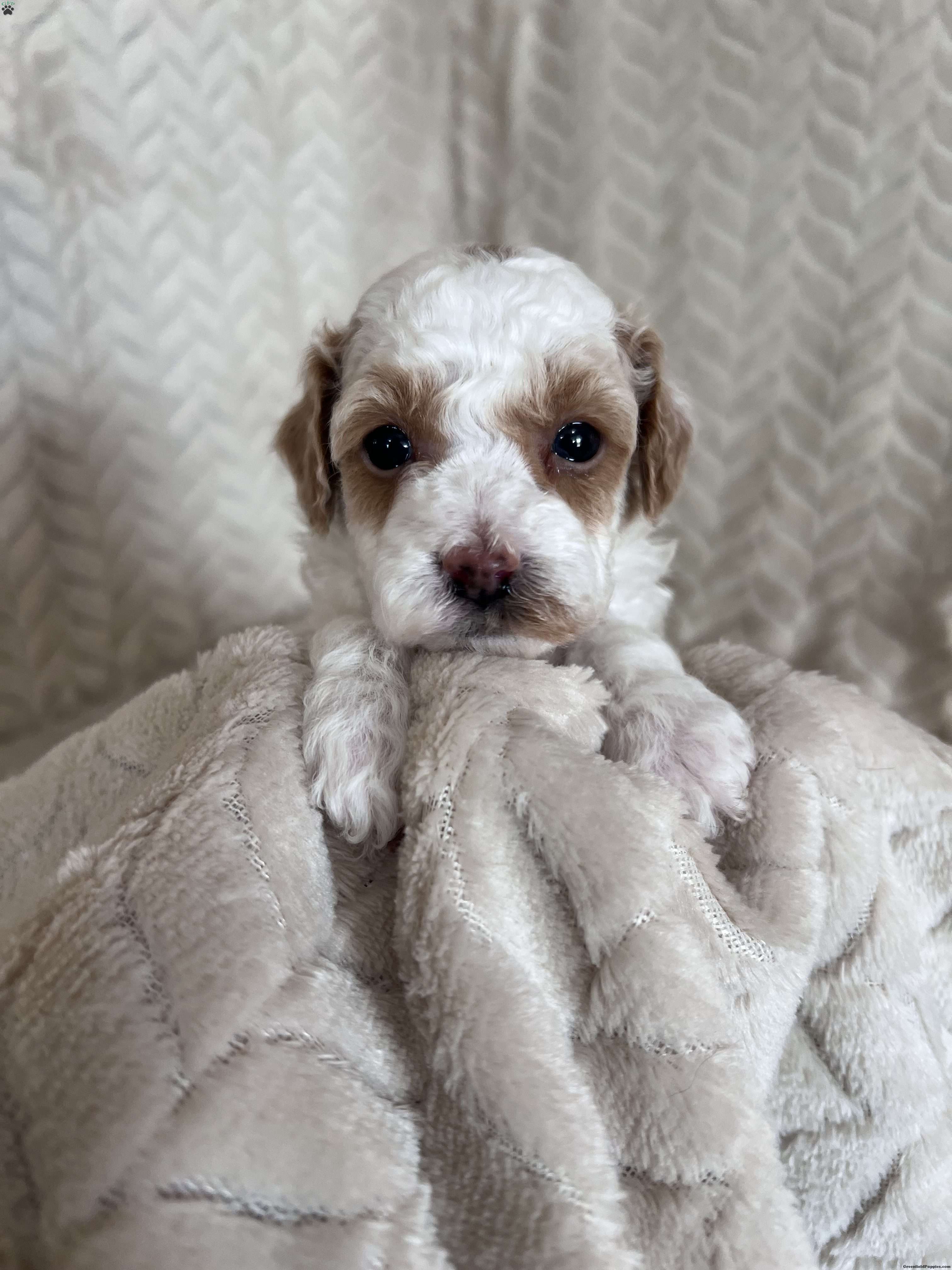 Meet Gizmo! These sweet AKC-registered Toy Poodle puppies are raised with lots of love and attention. They are microchipped and come from genetically tested parents, Rambo (4.5 lbs) and Brinley (8.5 lbs). Each puppy is vet checked, up to date on shots and wormer, and goes home with a 30-day health guarantee plus a 2-year genetic health guarantee. Raised around kids, they are well socialized, playful, and affectionate with great little temperaments. They’re truly wonderful pups looking for loving homes. Gizmo has an estimated adult weight of 6-8 lbs.