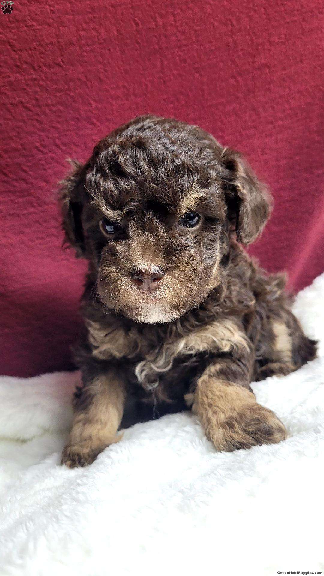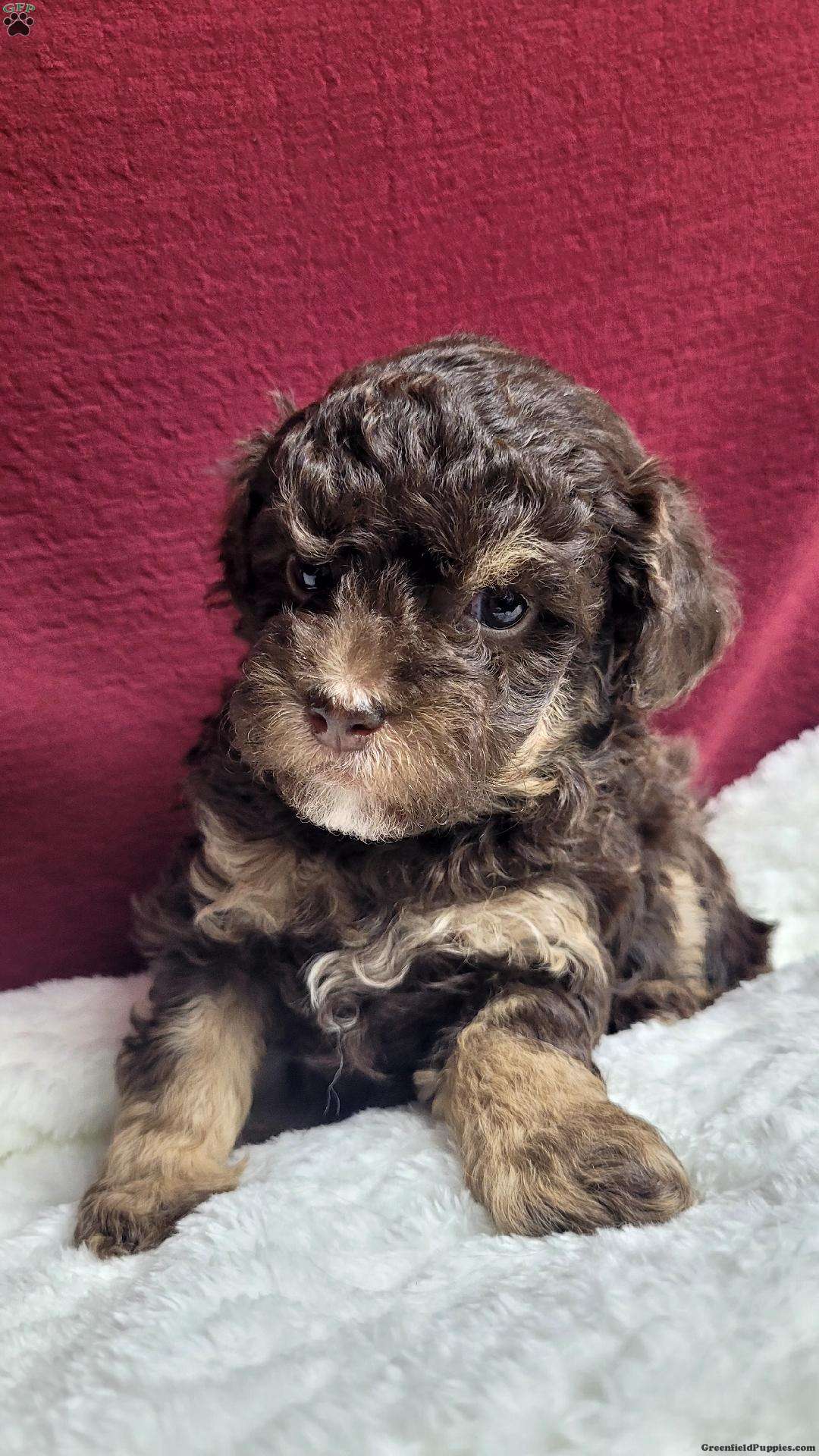 Kisses is a very sweet and well socialized puppy. She has her mom’s laid back personality, but loves to play with her litter mates and with children. She can be registered with the AKC. Her mom is a toy poodle weighing 6 # and her dad weighs 12 #. Please contact us to make sweet Kisses your very own puppy!