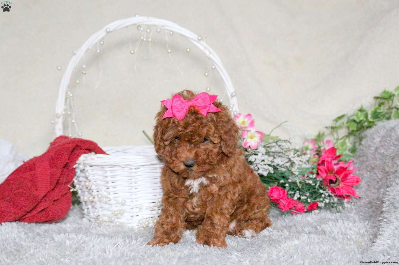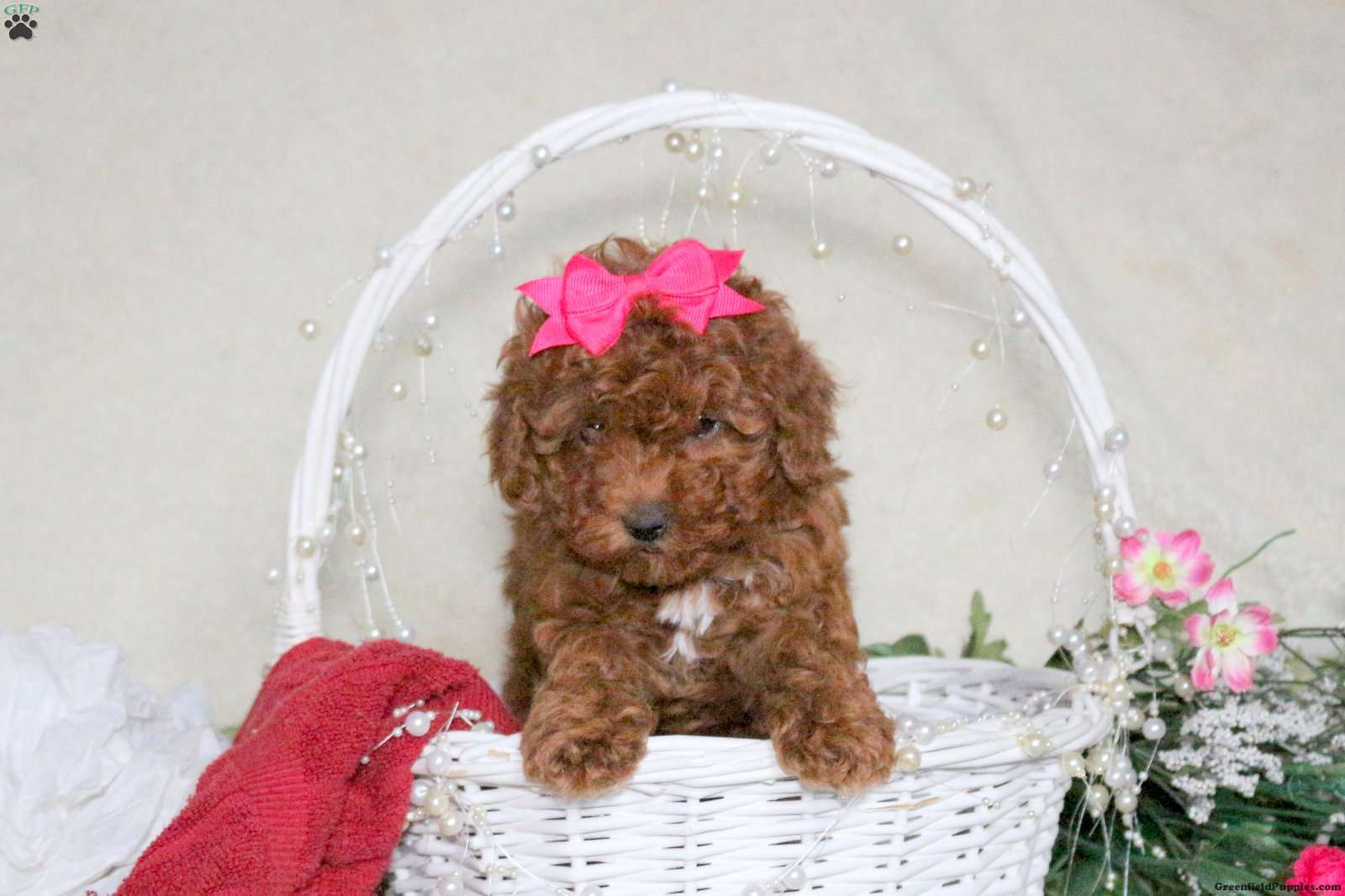 Here is a lovable Toy Poodle puppy who can be registered with the ICA. Soft and sweet, Pearl will be the best little addition to her forever family! This cutie is socialized, family raised with children, and ready to meet you. Pearl has been seen by a vet and is up to date on shots and de-wormer, plus comes home with a health guarantee provided by the breeder.