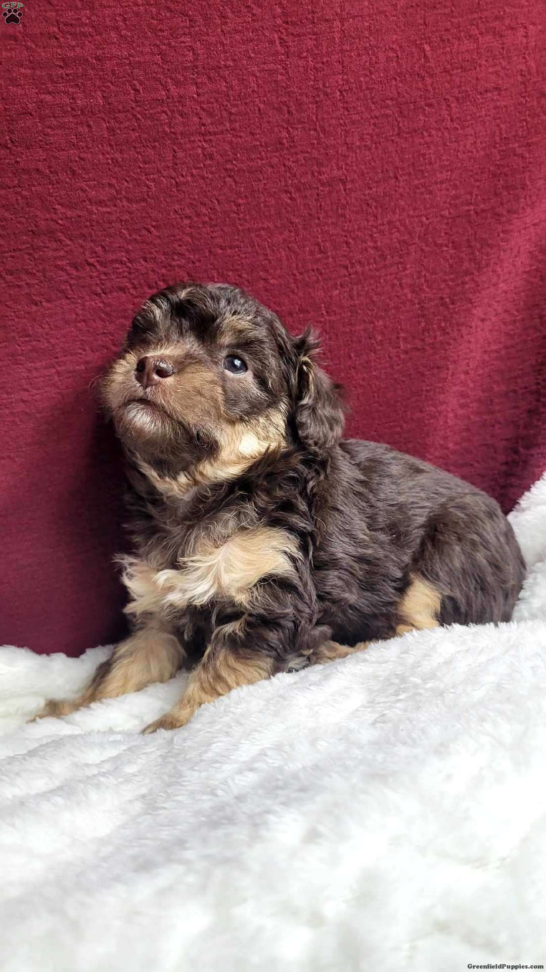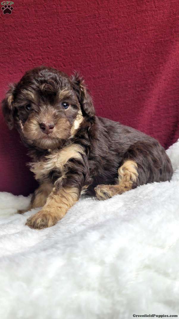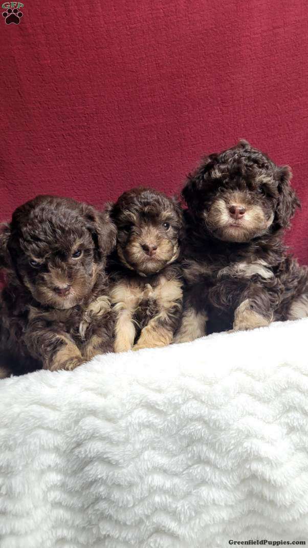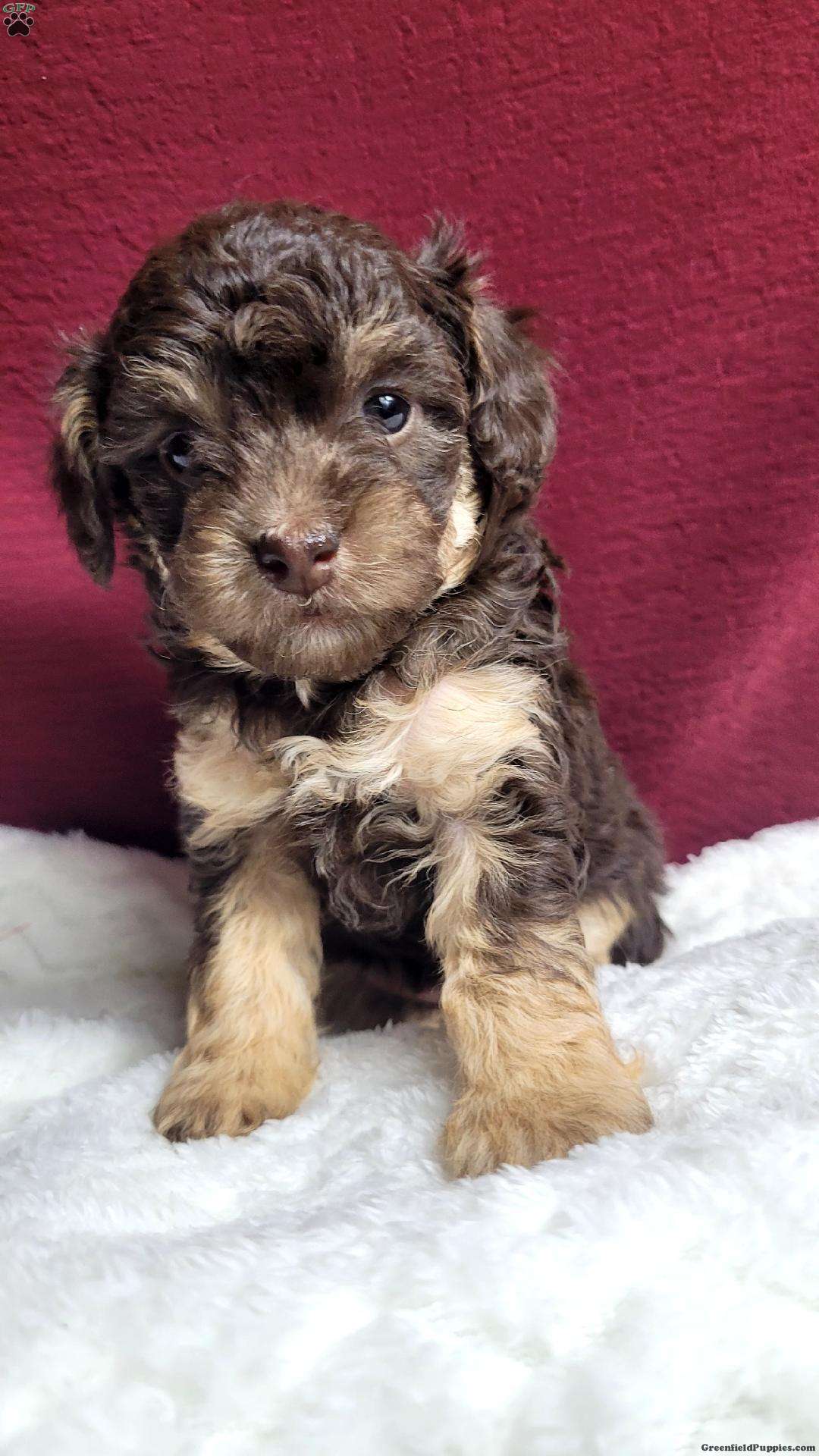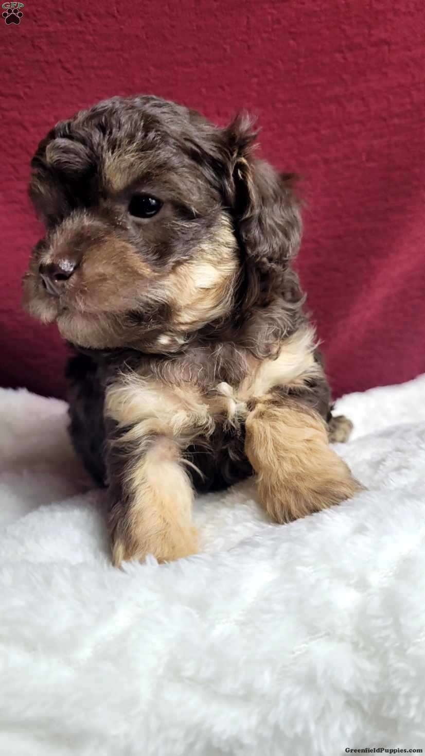 Snuggles is a very Lively and well socialized  puppy. She loves to play with children  and will make a great companion.  She is registered  with the AKC. She is the smallest  of her siblings  and trending to be  small like her mom, which  weighs 6 #. Her dad is a mini poodle weighing  12 #. Please contact us to make sweet  Snuggles  your very own puppy!