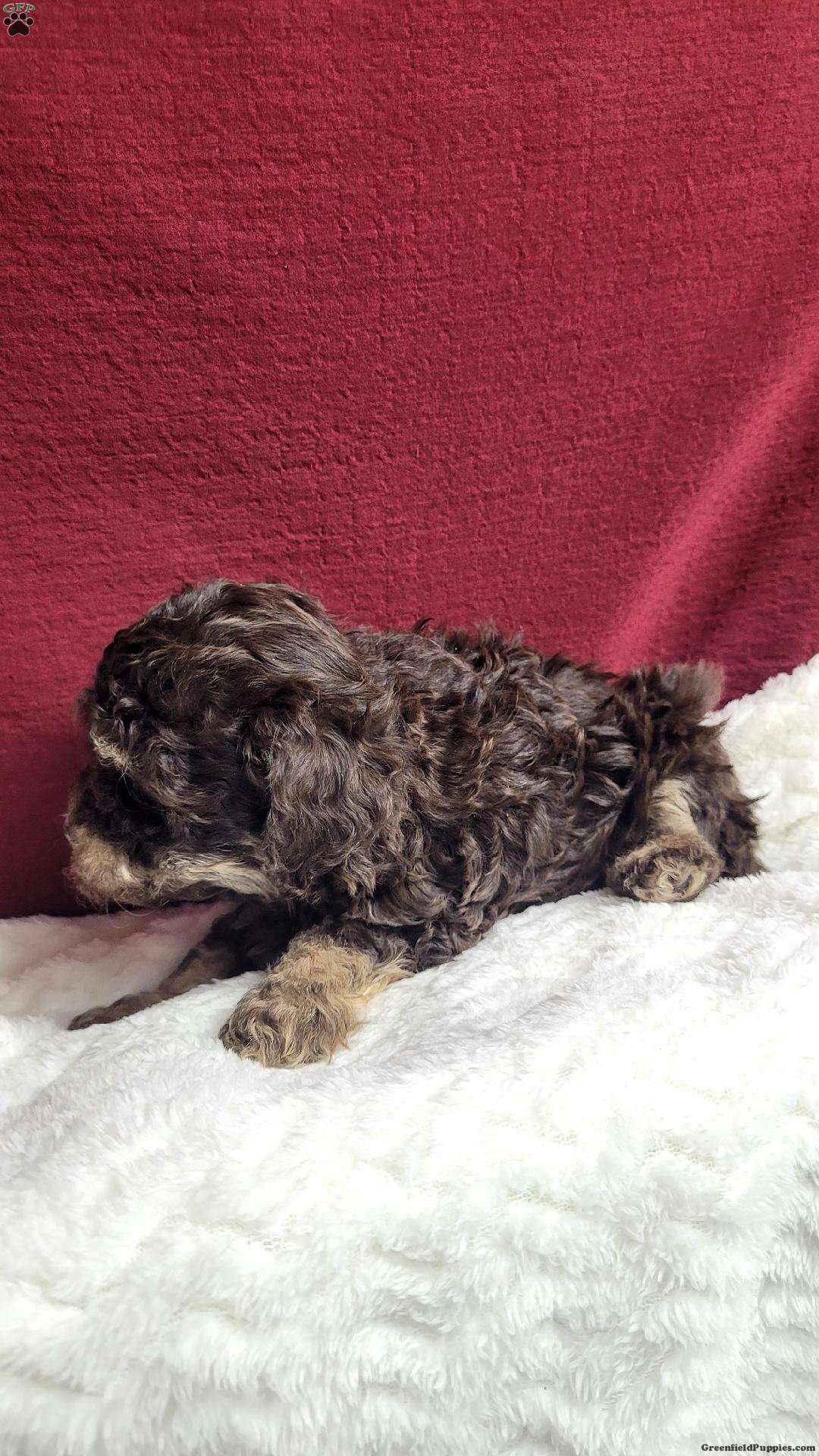 Teddy is a very sweet and well socialized puppy. He is registered with the AKC. He loves to play with children and will make a great companion. He is trending to be the size of his dad, which weighs 12 #. His mom is a toy poodle, at 6 #.. He has a laid back personality like his mom. Please contact us to make sweet Teddy your very own puppy!