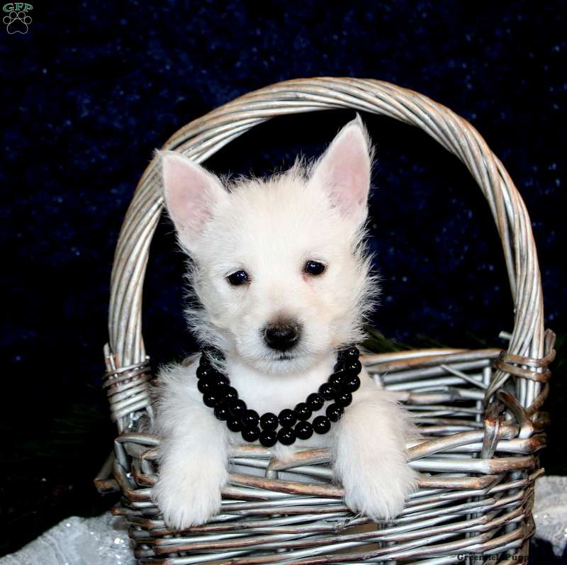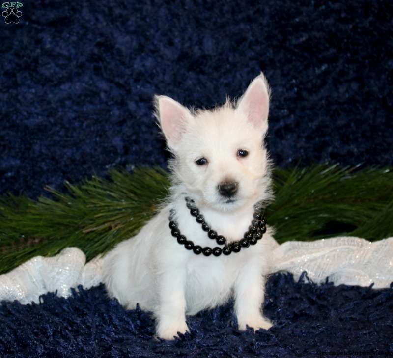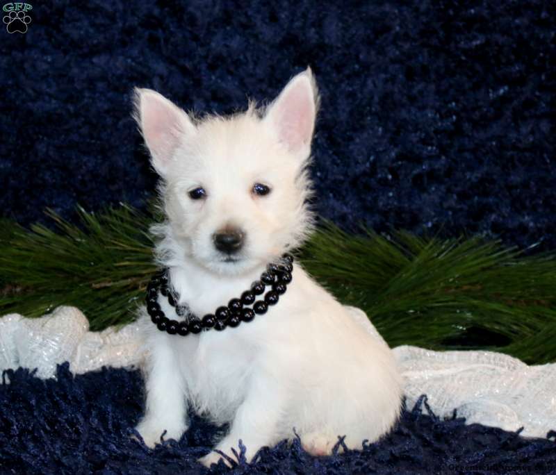 Krista is an adorable West Highland Terrier puppy who can be registered with the ACA. This cutie comes home microchipped and with a 30 day health guarantee as well as an extended genetic health guarantee, both provided by the breeder. Krista has been seen by a vet and is up to date on shots and de-wormer. This petite pooch is socialized and ready to meet you!