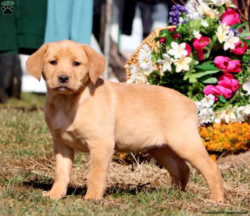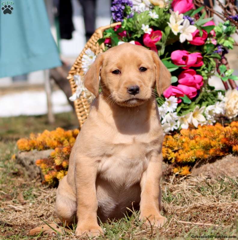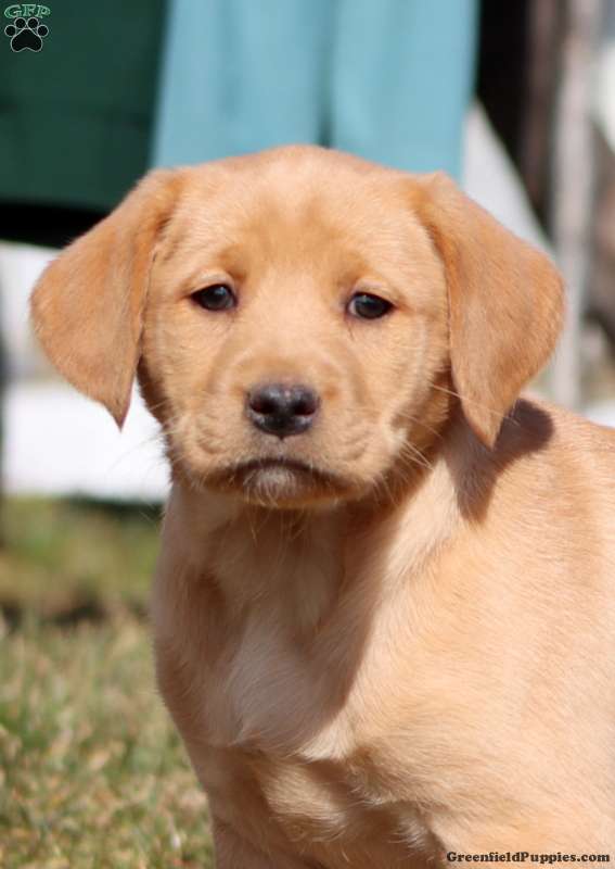 Teresa is a sturdy and sweet Yellow Labrador Retriever puppy who likes to explore. This happy girl comes home with a 30 day health guarantee plus an extended genetic health guarantee, both provided by the breeders. Teresa has been seen by a vet and is up to date on shots and de-wormer. This cutie is socialized, family raised with children, and ready to be adored by you!