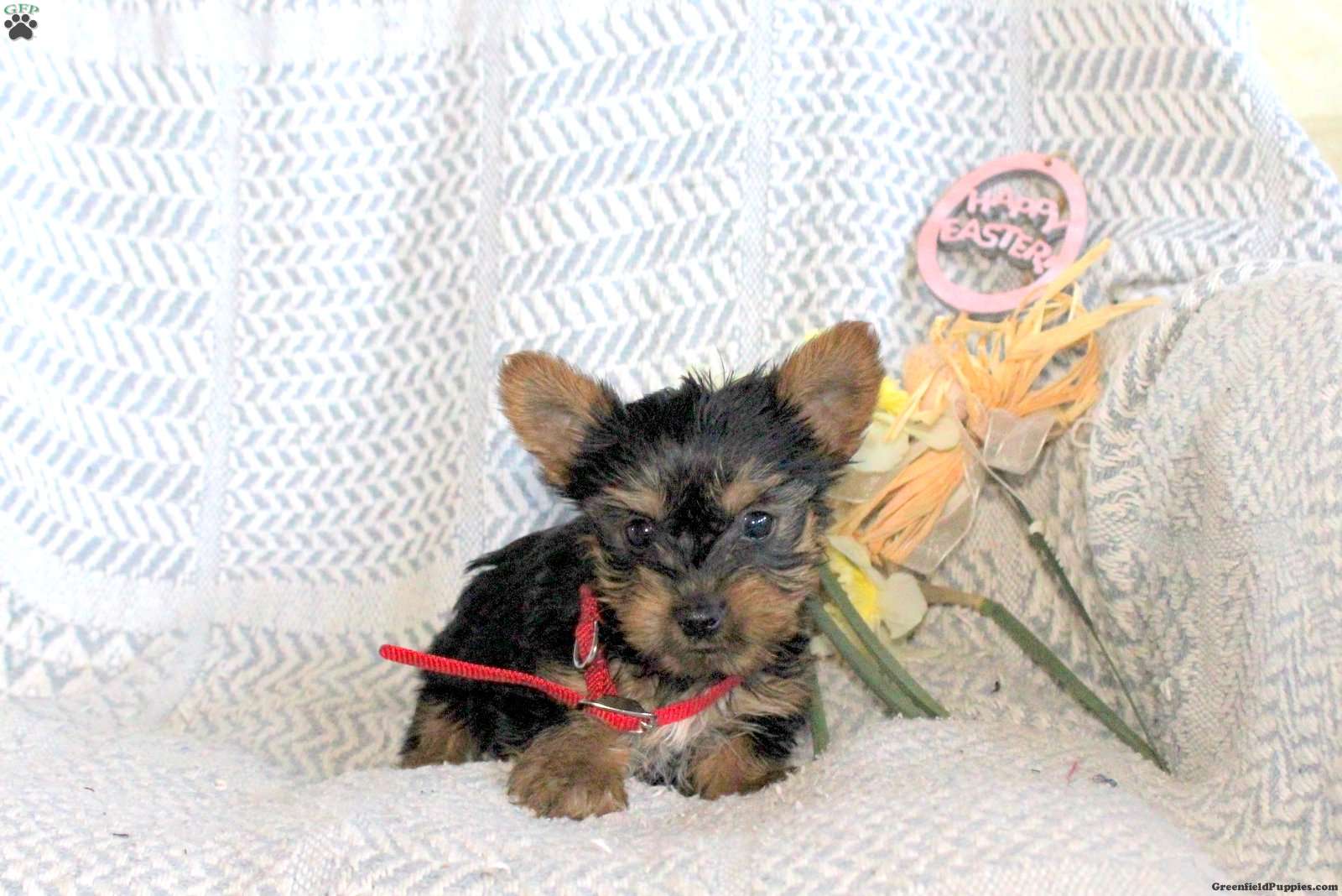 Jude is an affectionate Yorkie puppy who will love being by your side! This cutie-pie comes home with a health guarantee provided by the breeder, plus has been seen by a vet and is up to date on shots and de-wormer. Jude is socialized, family raised, and ready to  meet you!
