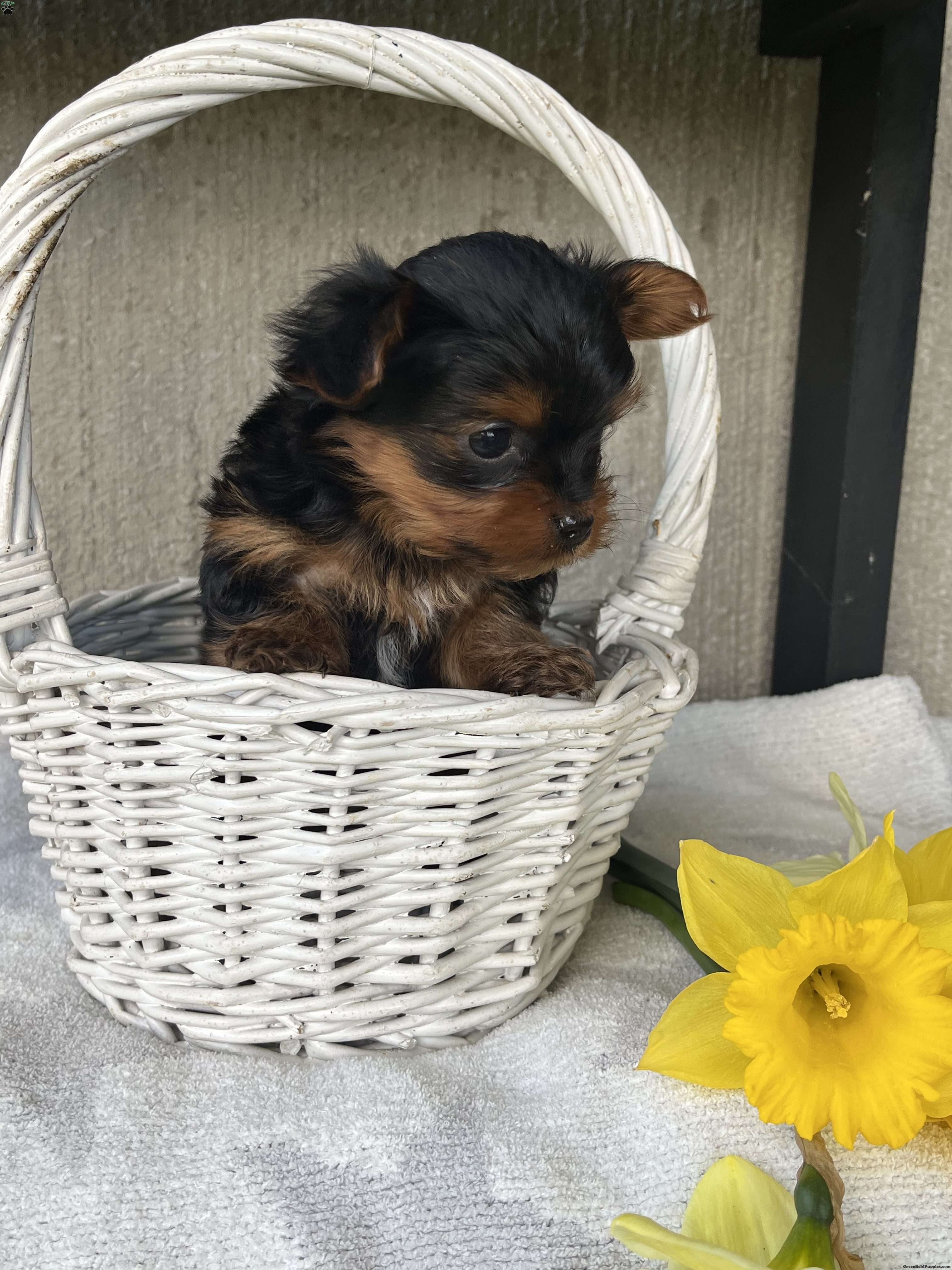 Meet Lily a super fun Yorkie puppy. She is vet checked & up to date on shots & wormer. She comes with a health guarantee provided by the breeder! Lily is well socialized & currently being family raised! Lily is the smallest puppy in the litter of 4. Both parents weigh 4-5 pounds.