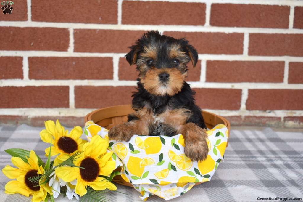 Lola is a darling Yorkie puppy who loves to play! This petite pooch is family raised with children, socialized, and ready to be adored by you! Lola comes home with a health guarantee provided by the breeder, plus has been seen by a vet and is up to date on shots and de-wormer. This cutie-pie will be a sweet little companion!