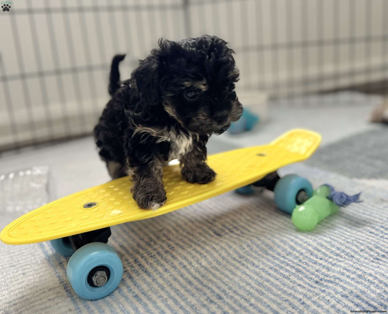 Marcie is half poodle half yorkie. Her dad is a 5.5lb poodle and mom is a 7lb yorkie. She is charting about 5lbs. She loves to play with toys. She is mild mannered and will get along well with other dogs. May not do well with young children as she is small. Photo of mom and dad above. She is ready to go home Valentines Day. Deposit required to reserve her.
